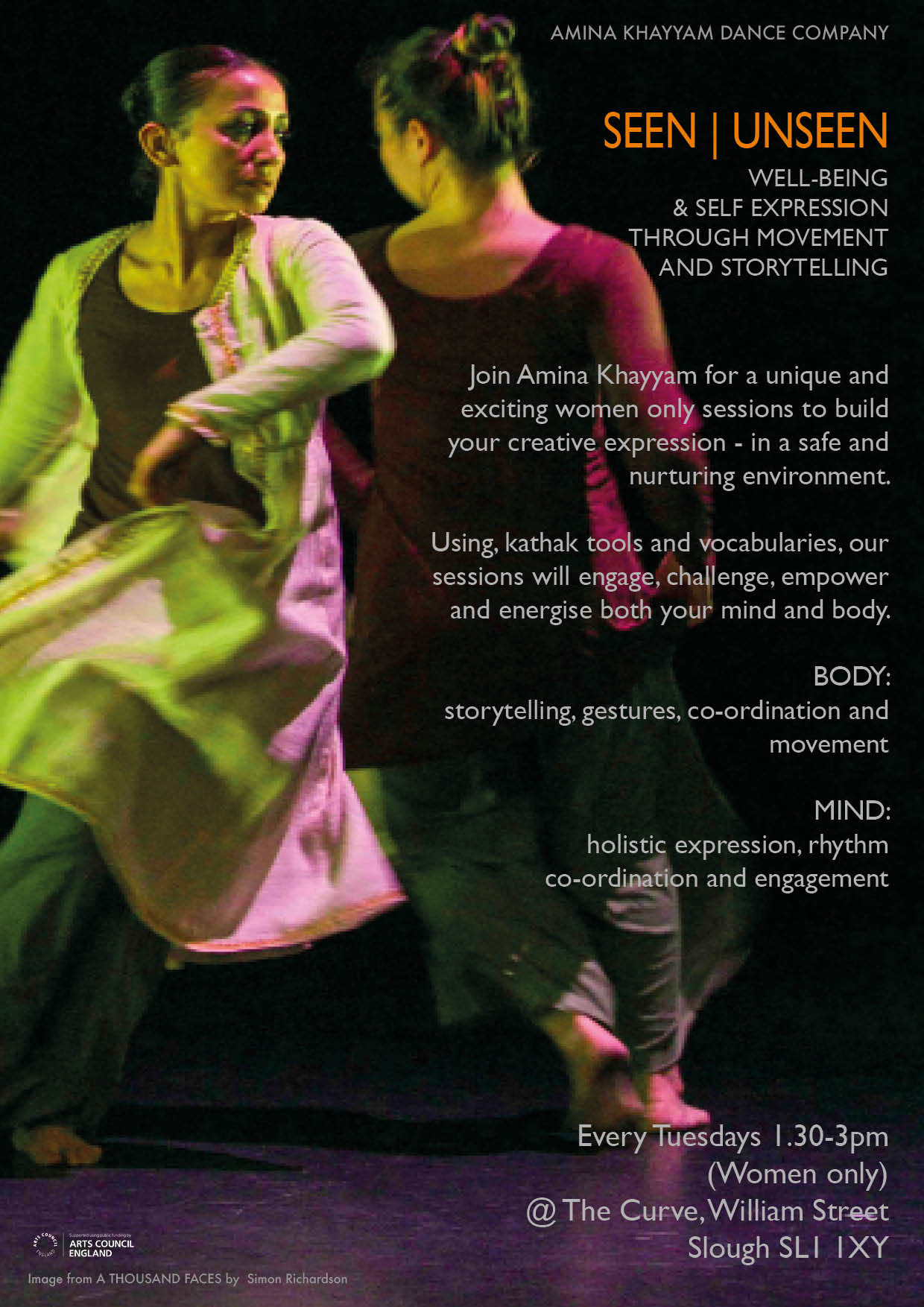 Amina Khayyam Dance Company are running free workshops for disadvantaged/culturally disengaged women and classes for young adults and kids.