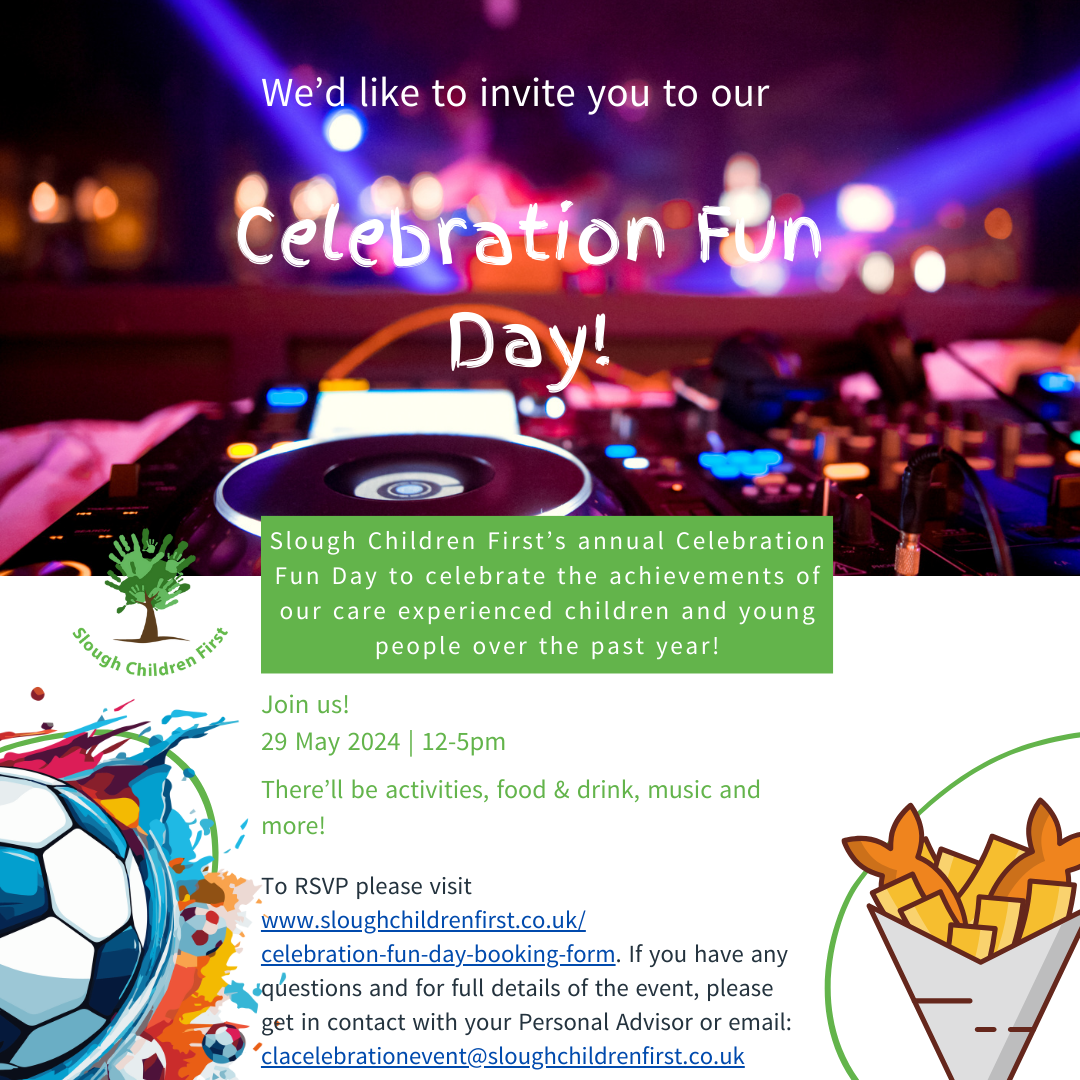 To book your place: www.sloughchildrenfirst.co.uk/celebration-fun-day-booking-form