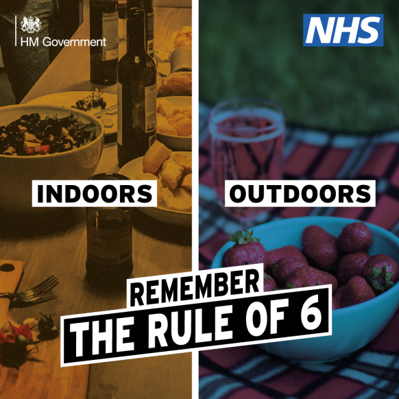 When meeting friends and family you do not live with (or have formed a support bubble with) you must not meet in a group of more than 6, indoors or outdoors.