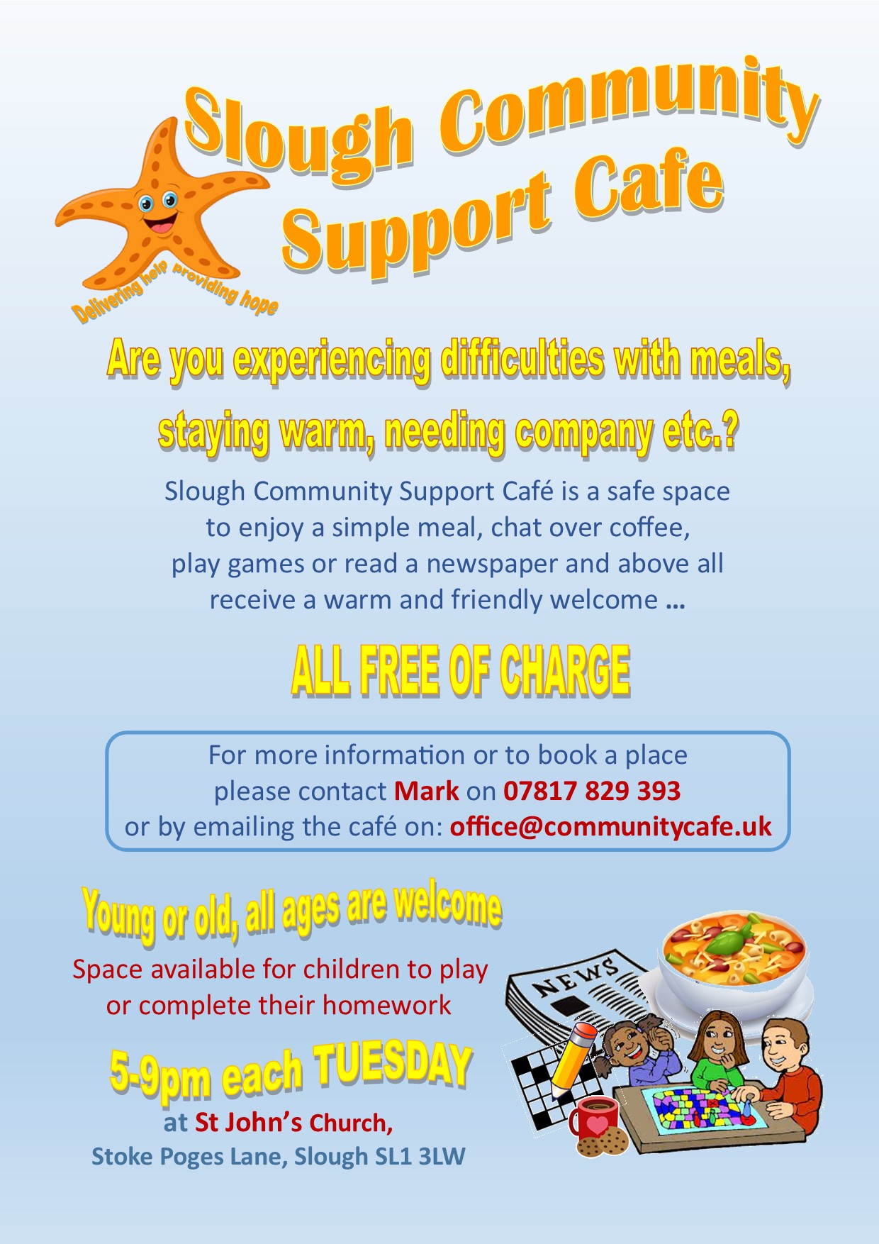 Do look out for information on Warms Spaces Slough that should be coming out soon. We have had a number of groups come forward to sign up which is fantastic. In the meantime, there are now TWO Slough Community Support Cafes offering a warm space and a free meal. So please do share with your networks for next week (details attached).