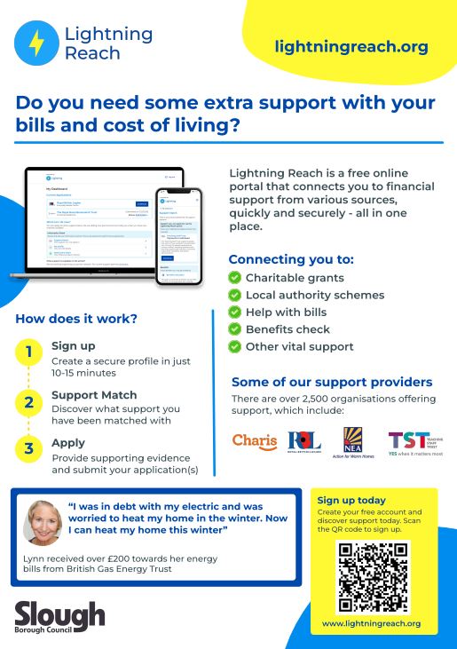 While many children and teachers are looking forward to a well-deserved summer break, we understand this time can bring financial challenges for many parents. We’ve teamed up with Lightning Reach to help residents of Slough to find financial support.