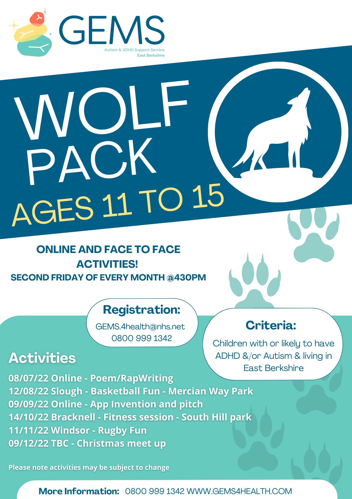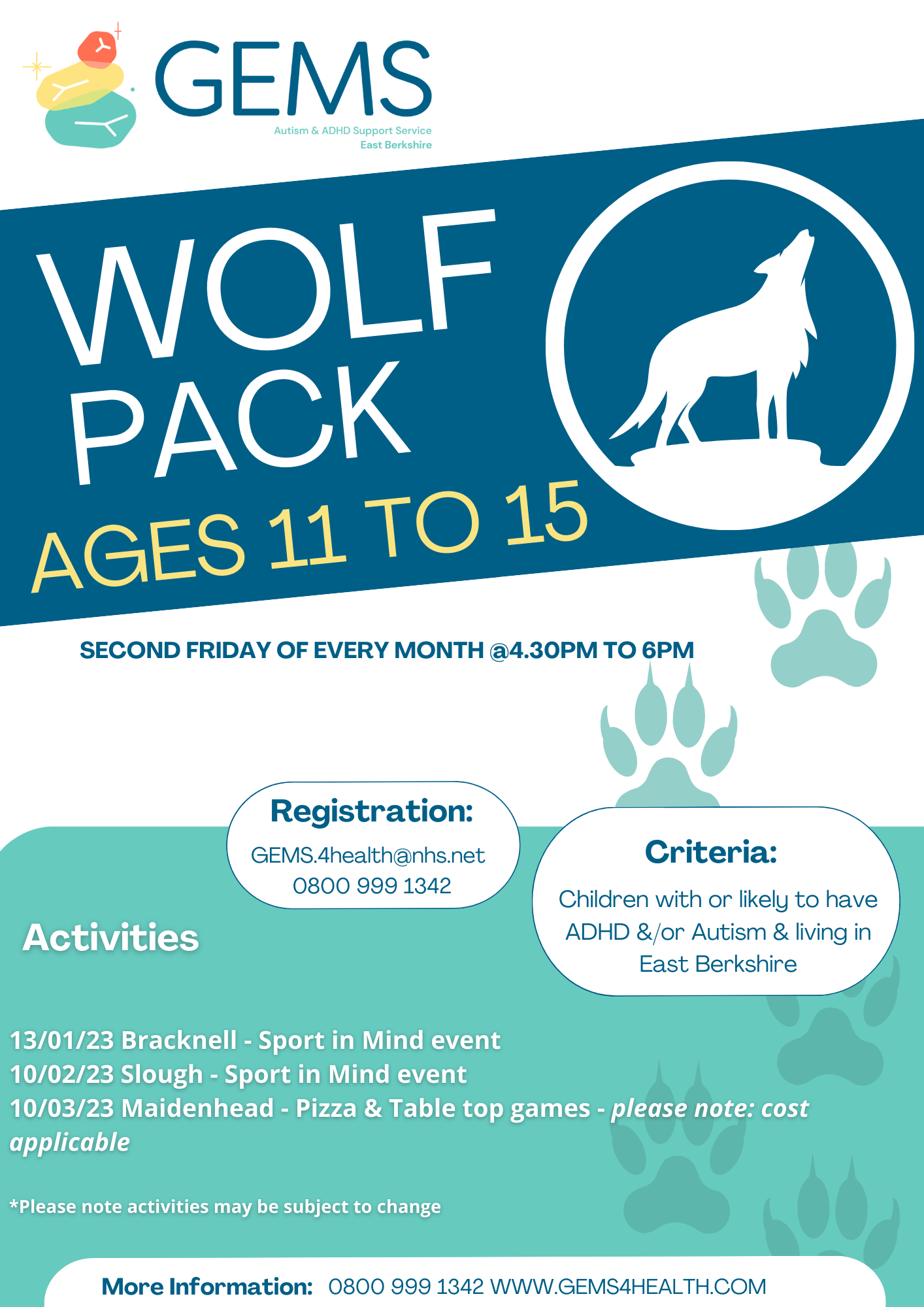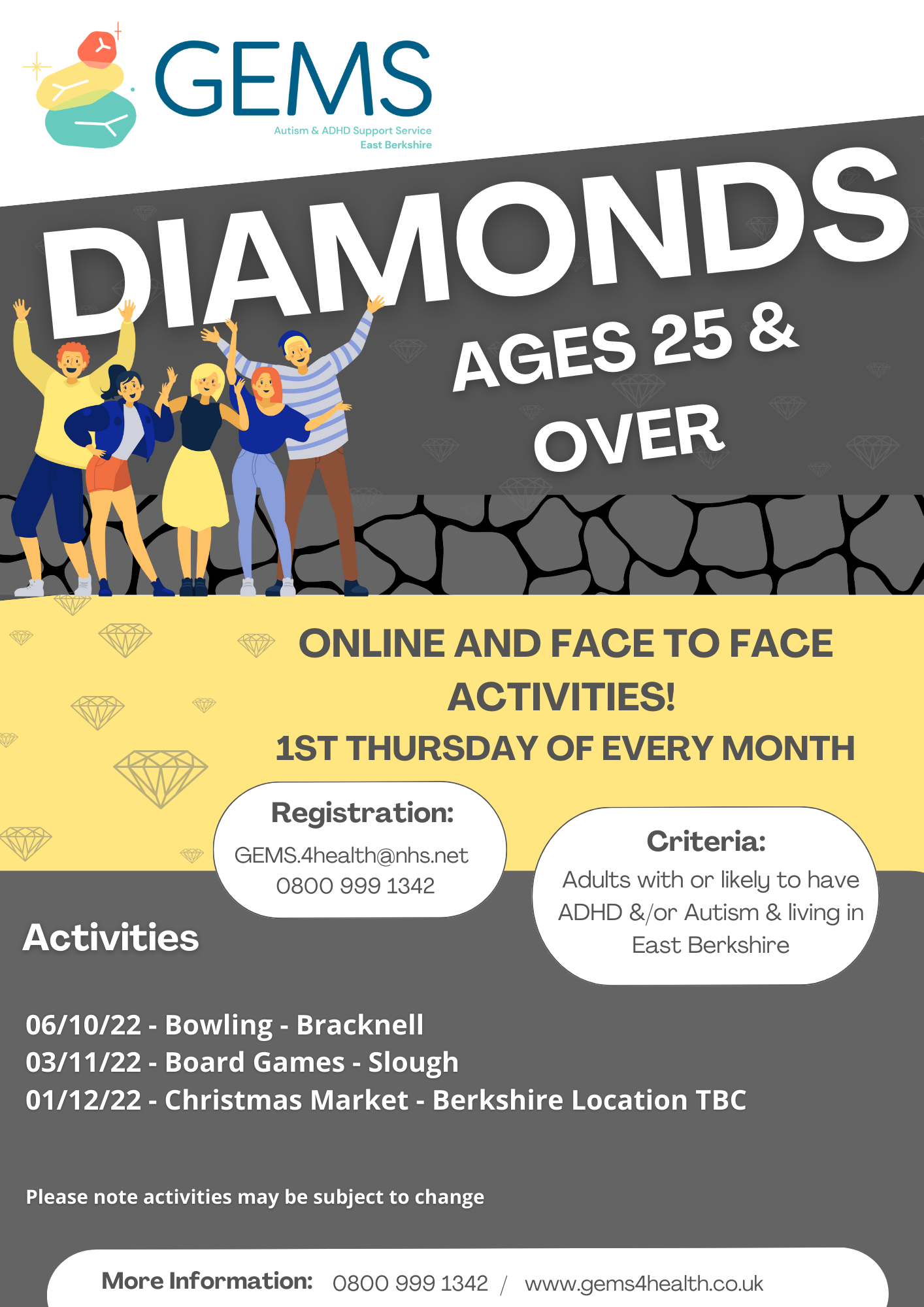 To register e-mail GEMS.4health@nhs.net or call on 0800 999 1342