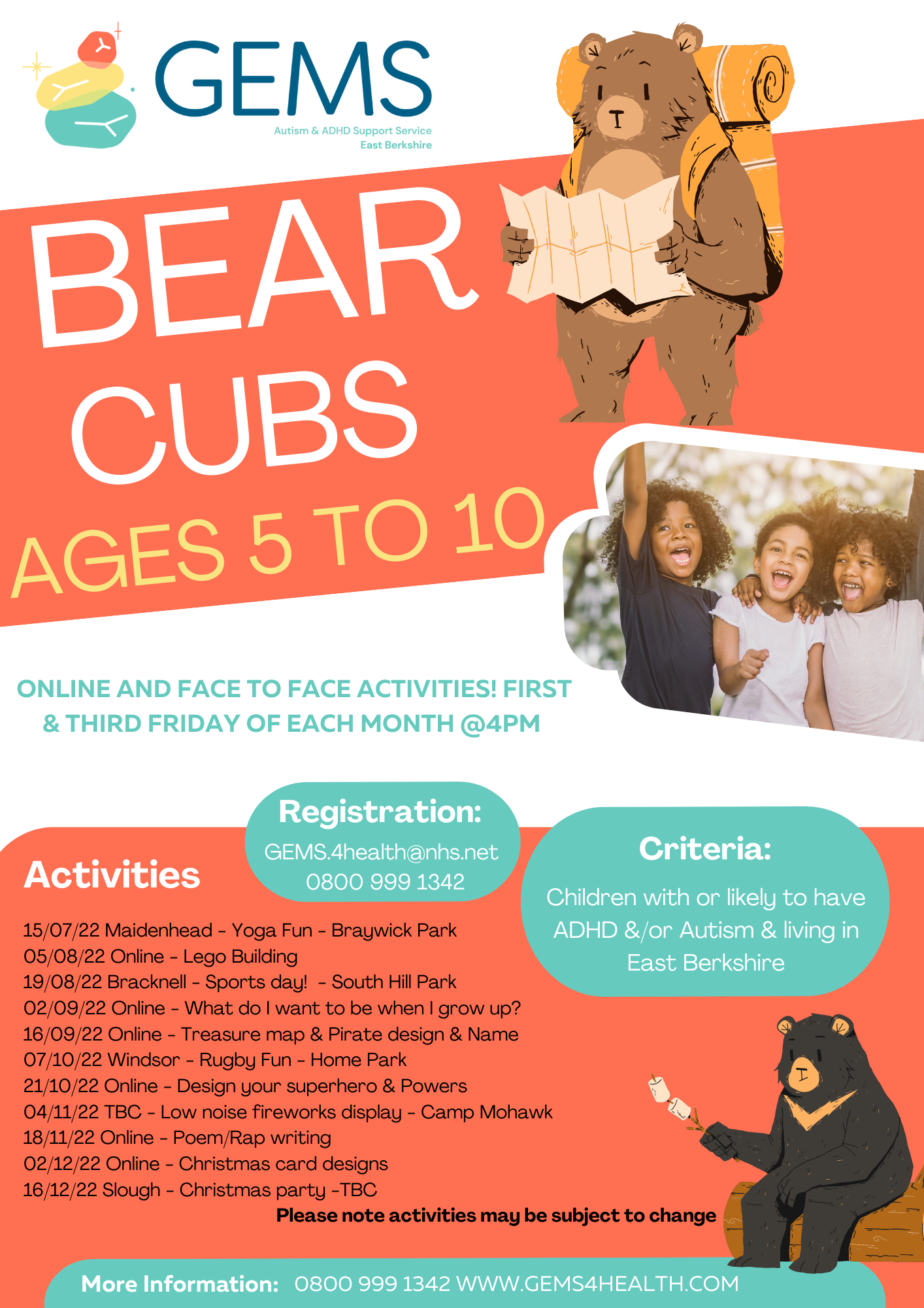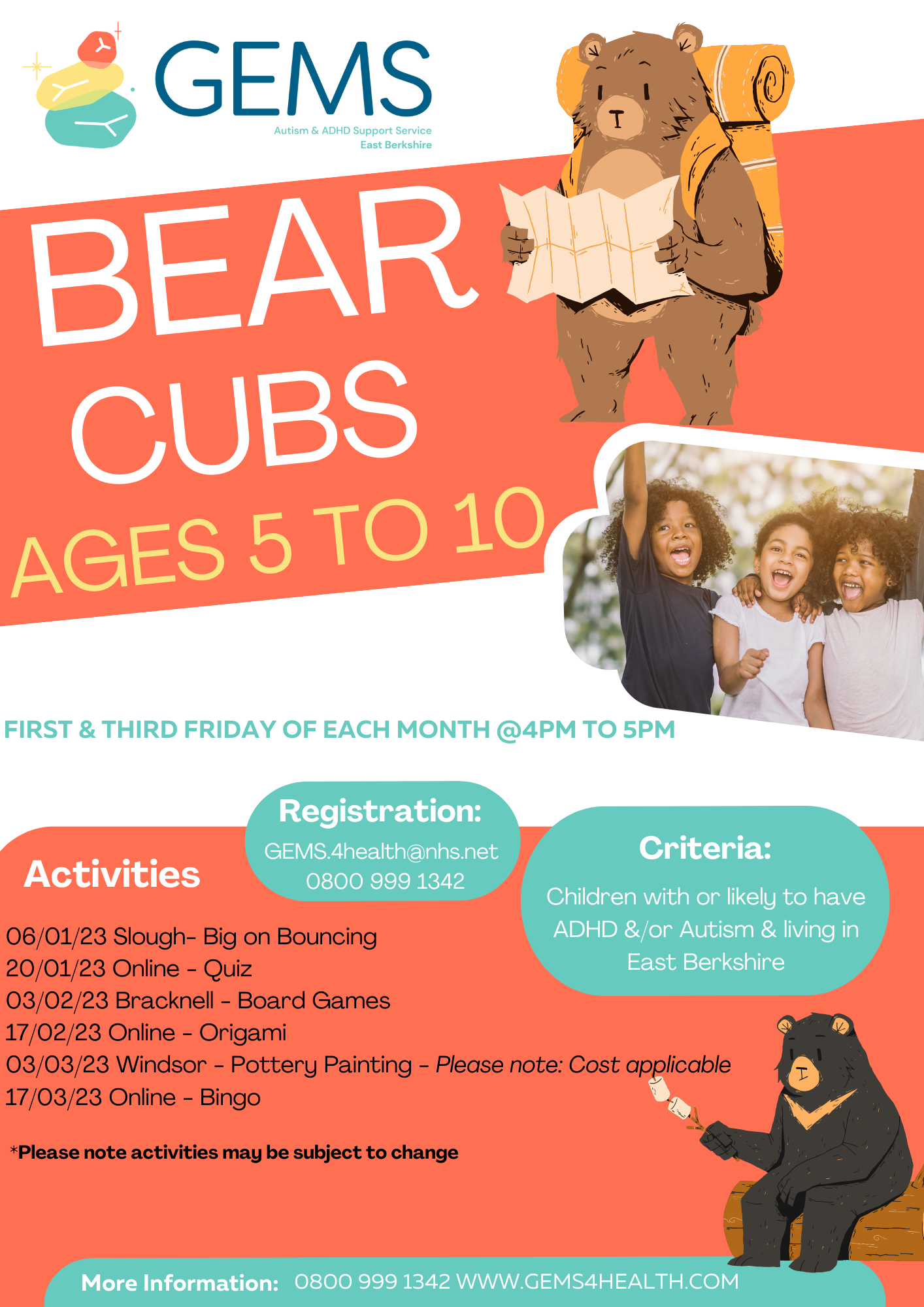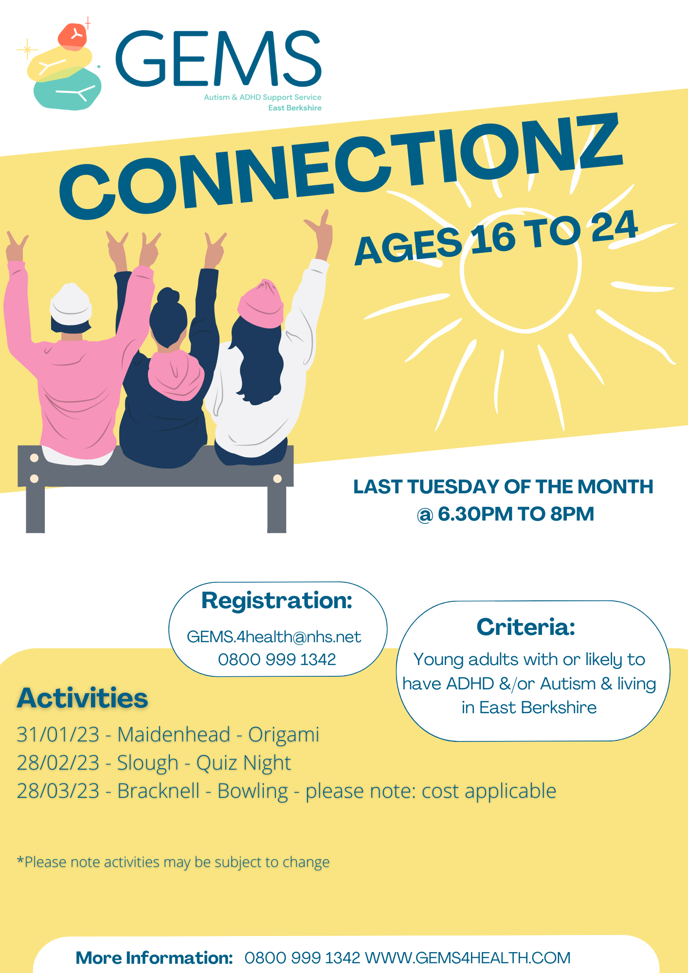 GEMS is for children, young people and adults who are diagnosed with or who may have, Autism and/or Attention Deficit Hyperactivity Disorder (ADHD). This service also supports parents and carers and is open to anyone living in Slough, RBWM or Bracknell Forest.