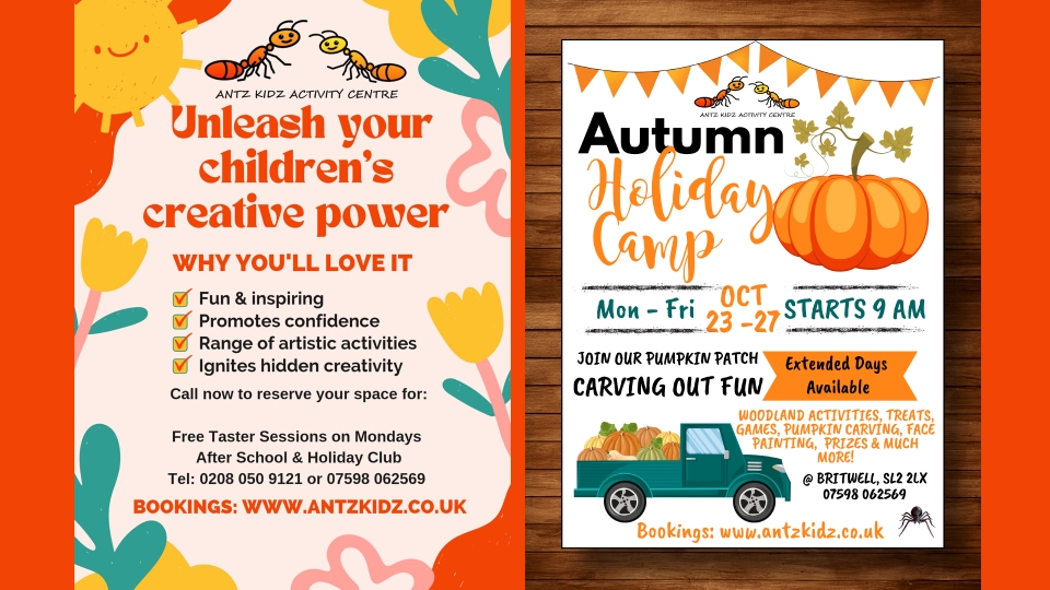 - Antz Kidz are running after school and holiday clubs starting from Monday 23 October and will be open from 08:00 - 18:00. (Please see the flyers for more details, and please do share this information with your families).