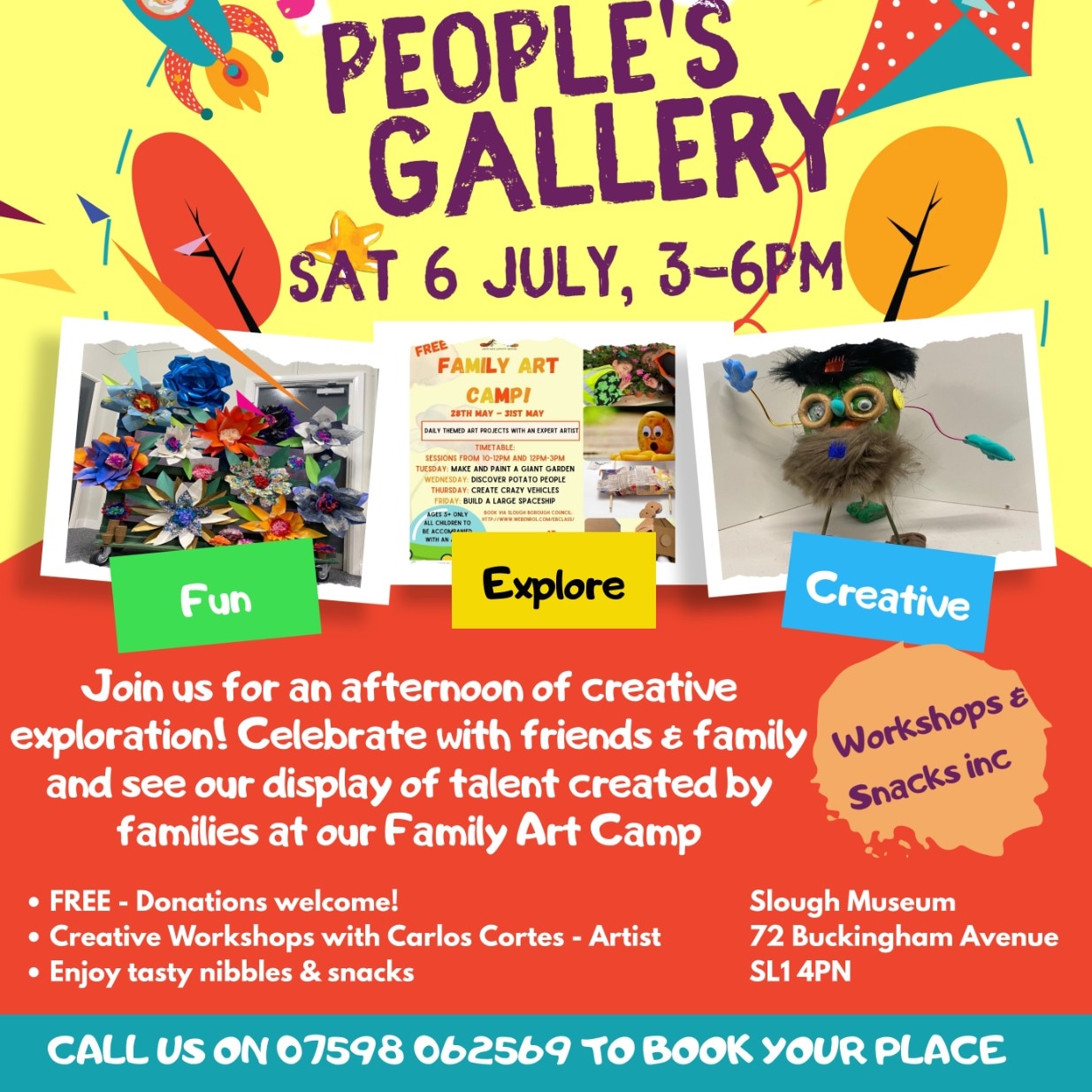 2) People's Galleries 6 July 15:00 - 18:00 - continuation of Family Arts Camp - demonstrating SM's ability to transform its space to a gallery. Creative fun for all the family.
