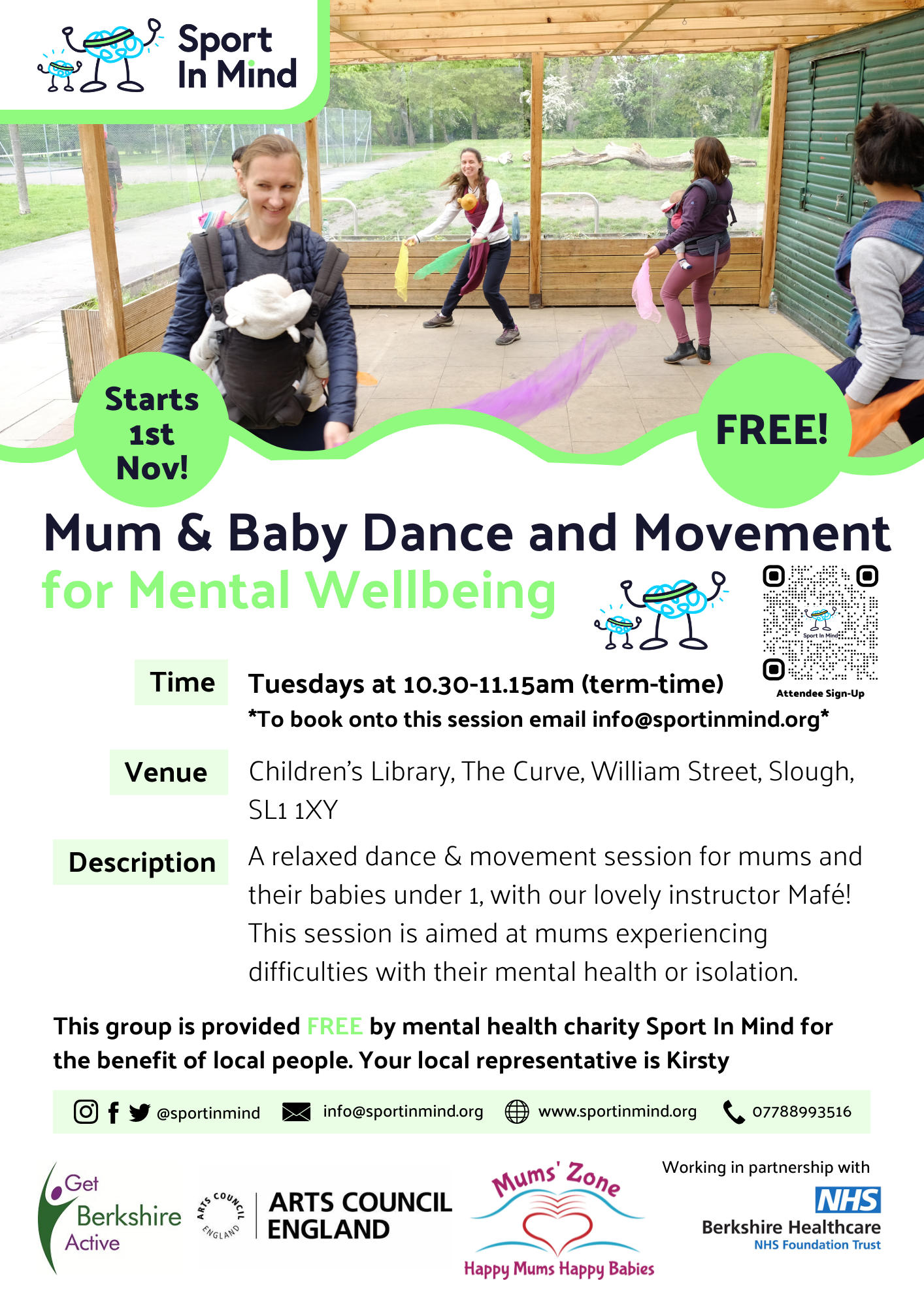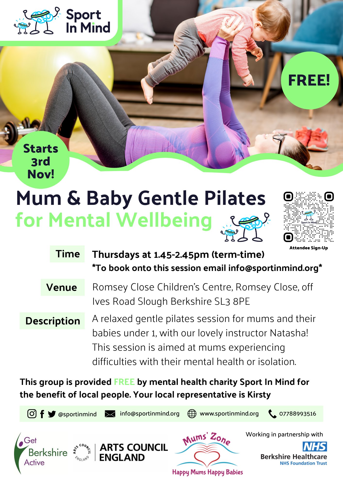 Attached is the timetable, as well as the poster for each of the four sessions. All of the information is also available on the Sport in Mind website, with the Slough Timetable on the Mum & Baby page and further details of each session can be found using our Activity Map - just type in Slough to the search box and the Mum and Baby sessions will appear in the list of sessions below the map to click on.