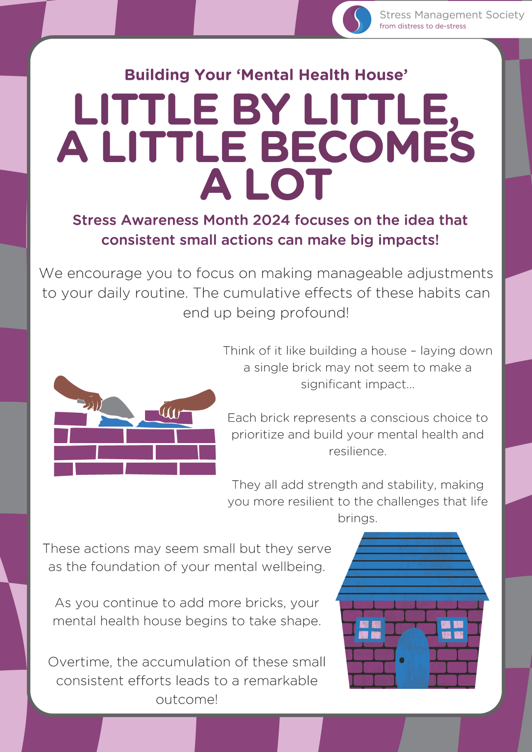 This Stress Awareness Month, we’re encouraged to focus on making manageable adjustments to our daily routine ‘little by little’ (please see poster attached).
