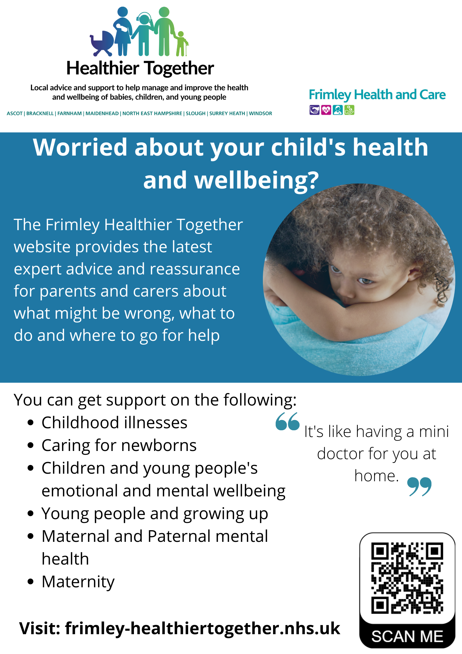 The Healthier Together Platform is a website to support local parents and carers to help them manage a range of common childhood illnesses. The site provides information to help parents/carers recognise what might be wrong, what to do to help their children whilst at home, and where to go for more help if they do need to see a healthcare professional. In most cases, childhood illnesses can be managed at home with over-the counter medication and rest.